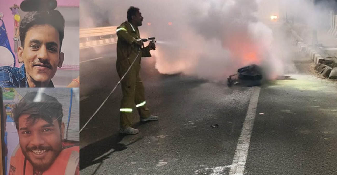 फिरोजाबाद…आगरा—फिरोजाबाद में हाइवे पर एक्सीडेंट के बाद बाइक में लगी आग. दो युवकों की मौके पर ही मौत…बुरी तरह से झुलस गए शव