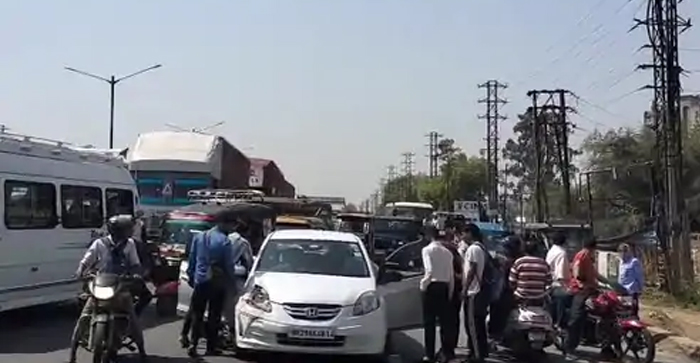 इधर एक्सीडेंट के बाद लोगों की भीड़ लग गई जिसके कारण जाम की लग गया. कार में फंसे दोनों पति—पत्नी को लेागों ने सुरक्षित बाहर निाकला. गनीमत रही कि कोई हताहत नहीं हुआ. पुलिस ने क्षतिग्रस्त वाहनों को साइड कराया और इसके बाद यातायात को सामान्य किया गया.
