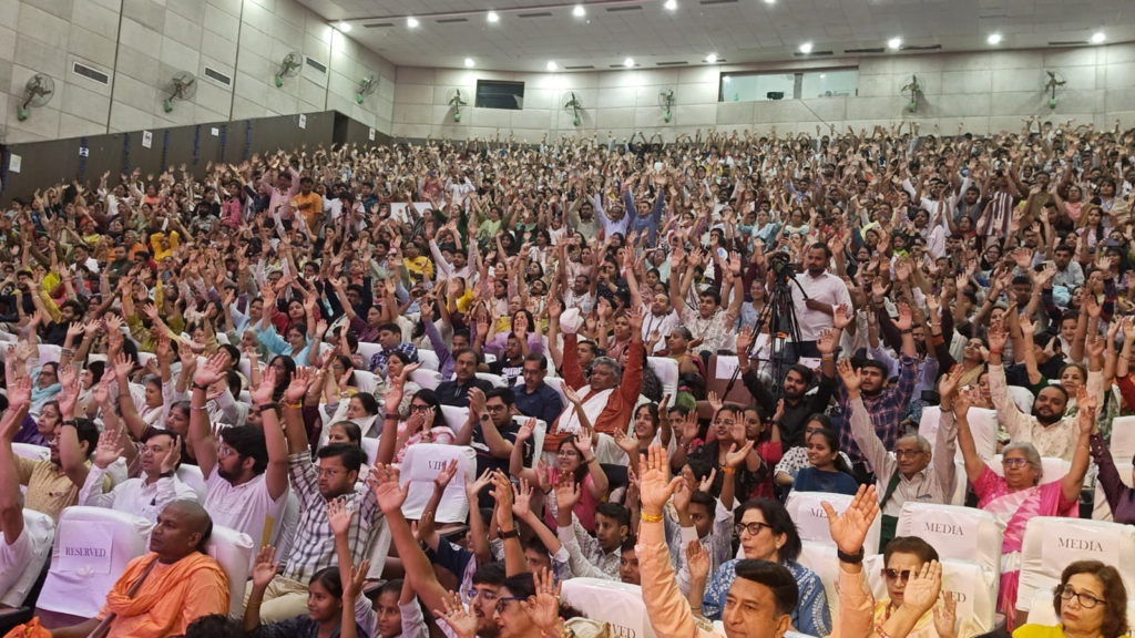 लगभग दो हजार श्रद्धालुओं की उपस्थिति से सूरसदन प्रेक्षागृह खचाखच भरा था। जिसे जहां जगह मिली वहीं बैठकर शांतिपूर्ण तरीके से अमोघ लीला प्रभु को सुनने के लिए बैठ गया। कुछ सीढ़ियों पर कुछ भक्त जमीन पर बैठकर तो कुछ खड़े होकर ही प्रवचन सुनते रहे। कार्यक्रम के अन्त में विद्यार्थियों ने अपने जिज्ञासा भरे प्रस्न भी किए। लविका वर्मा ने अपने हाथ से बनाए जगन्नाथ जी भी अमोघ लीला प्रभु को भेंट किए। सबी भक्तों को प्रसाद वितरण किया गया।