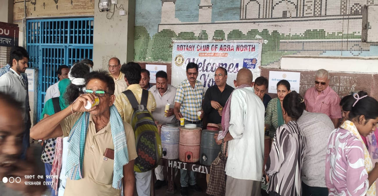 आगरा छावनी रेलवे स्टेशन पर रोटरी क्लब ऑफ आगरा नॉर्थ के द्वारा नि:शुल्क जल सेवा का आयोजन किया गया. गर्मी के मौसम में यात्रियों को राहत प्रदान करने के उद्देश्य से आयोजित इस सेवा के अंतर्गत आगरा छावनी रेलवे स्टेशन से गुजरने वाली विभिन्न ट्रेनों के यात्रियों को शीतल एवं स्वच्छ पेयजल उपलब्ध कराया जा रहा है. रोटरी क्लब ऑफ आगरा नॉर्थ के सौजन्य से आगरा छावनी रेलवे स्टेशन पर नि शुल्क RO जल सेवा की सेवा शुरुआत की. इस पहल से यात्रियों को अत्यधिक सुविधा एवं राहत प्राप्त हुई है. इस अवसर पर संस्था के सदस्यों के साथ स्टेशन निदेशक संतोष त्रिपाठी, मंडल वाणिज्य निरीक्षक आगरा छावनी सियाराम मीना व स्टेशन प्रबंधक आगरा कैंट, निरीक्षक रेल सुरक्षा बल,उप स्टेशन प्रबंधक वाणिज्य एवं अन्य वाणिज्य कर्मचारी उपस्थित रहे. सभी ने यात्रियों की सुविधा हेतु इस प्रकार की जनहितकारी पहल की सराहना की. आगरा मंडल द्वारा यात्रियों की सुविधा, सुरक्षा एवं बेहतर सेवाएं प्रदान करने के लिए निरंतर प्रयास किए जा रहे हैं तथा भविष्य में भी इस प्रकार के जनकल्याणकारी कार्य जारी रहेंगे.