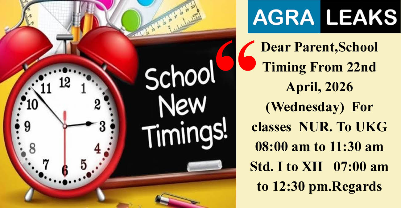 आगरालीक्स..आगरा में कॉन्वेंट स्कूलों का भी समय बदला. भीषण गर्मी को देखते हुए अब इतने बजे होगी स्कूलों की छुट्टी..देखें नया समय