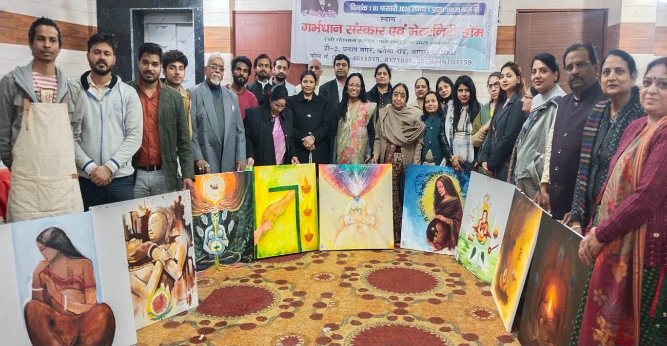 ललित कला संस्थान आगरा की पूर्व निदेशक और वर्तमान में मेवाड़ विश्वविद्यालय राजस्थान की महानिदेशक प्रो. डॉ. चित्रलेखा सिंह के निर्देशन में आगरा और बाहर के डॉ. त्रिलोक शर्मा, डॉ. मंजू बघेल, डॉ. मधु गौतम, डॉ. त्रिगुणातीत जैमिनी, कमलेश्वर शर्मा, नरेश कुमार, सौम्य देव मंडल, राहुल, विपिन उपाध्याय और सुदेश सहित 11 वरिष्ठ और उदीयमान चित्रकारों ने लाइव पेंटिंग बनाकर गर्भ संस्कार और मातृत्व चेतना का अनुपम संदेश दिया। गर्भ संस्कार विषय पर ही आयोजित चित्रकला प्रतियोगिता के लिए ललित कला संस्थान, आगरा कॉलेज, संतराम कृष्णा कन्या महाविद्यालय, सेंट जॉन्स कॉलेज, बैकुंठी देवी और बीडी जैन गर्ल्स डिग्री कॉलेज सहित विभिन्न महाविद्यालयों से प्राप्त 100 से अधिक चित्र प्रविष्टियों की प्रदर्शनी भी सबके आकर्षण का केंद्र रही। यह प्रदर्शनी 2 और 3 फरवरी को भी प्रात: 10 बजे से शाम 5 बजे तक खुली रहेगी।