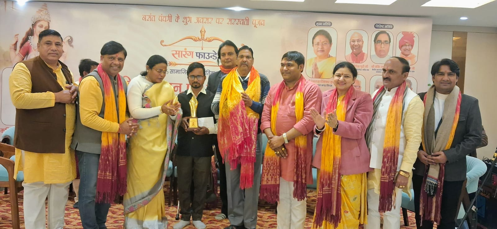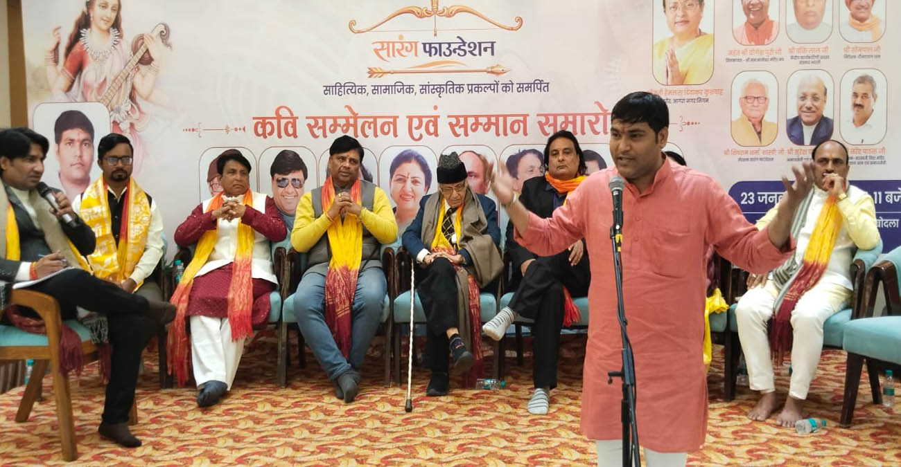 बसंत पंचमी के शुभ अवसर पर शुक्रवार को सिकंदरा- बोदला रोड स्थित द नंबरदार्स बैंक्विट हॉल में सरस्वती पूजन, कवि सम्मेलन और साहित्यकारों के सम्मान के साथ साहित्यिक, सामाजिक व सांस्कृतिक प्रकल्पों को समर्पित सारंग फाउंडेशन का गरिमामयी शुभारंभ किया गया। मुख्य अतिथि महापौर हेमलता दिवाकर, समारोह अध्यक्ष अंतर्राष्ट्रीय ख्याति प्राप्त कवि सोम ठाकुर, विशिष्ट अतिथि मनकामेश्वर मंदिर के महंत योगेश पुरी, संस्कार भारती के केंद्रीय कार्यकारिणी सदस्य बाँकेलाल गौड़, दीनदयाल धाम के निदेशक सोनपाल, सारंग फाउंडेशन के संरक्षक शिवराज शर्मा शास्त्री, समाजसेवी सुरेश चंद्र गर्ग, सरस्वती विद्या मंदिर दीनदयाल धाम के प्रबंधक नरेंद्र पाठक और सारंग फाउंडेशन के अध्यक्ष ओज के सशक्त कवि सचिन दीक्षित ने माँ शारदे की छवि के समक्ष दीप जलाकर समारोह का शुभारंभ किया।