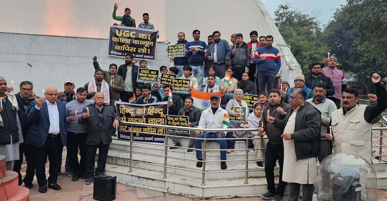 आगरा में सवर्ण समाज द्वारा आज बुधवार को यूजीसी कानून के विरोध में शांतिपूर्ण कैंडल मार्च का आयोजन किया गया. सवर्ण समाज द्वारा आयोजित इस विरोध प्रदर्शन में यूजीसी को समाज को बांटने वाली और देश की शिक्षा व्यवस्था को कमजोर करने वाला बताया. कैंडल मार्च शाम को शहीद स्मारक, संजय पैलेस, आगरा से प्रारंभ हुआ, जिसमें बड़ी संख्या में जागरूक नागरिकों, शिक्षकों, छात्रों एवं सामाजिक कार्यकर्ताओं ने सहभागिता की।