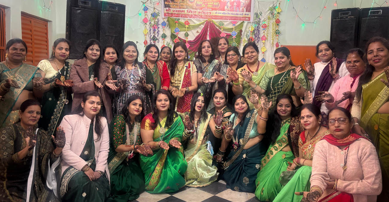 जहां श्याम नाम का स्मरण होता है, वहां भक्ति स्वतः श्रृंगार बन जाती है। इसी भाव के साथ श्री श्याम मित्र मंडल एवं श्री श्याम महिला मित्र मंडल, लोहा मंडी द्वारा आयोजित चार दिवसीय श्री श्याम महोत्सव के तृतीय दिवस शनिवार को पुनिया पाड़ा, लोहा मंडी स्थित पथवारी मंदिर में श्याम नाम की मेहंदी समारोह अत्यंत श्रद्धा, सौंदर्य और भक्ति के वातावरण में संपन्न हुआ। शनिवार को मंदिर परिसर में हुए इस आयोजन में महिलाओं ने अपने हाथों पर “श्याम” नाम की मेहंदी रचाकर बाबा के प्रति अपनी आस्था, प्रेम और समर्पण व्यक्त किया। भक्ति गीतों, श्याम नाम के जयकारों और मंगल भाव के बीच पूरा वातावरण आध्यात्मिक उल्लास से सराबोर दिखाई दिया। मेहंदी के साथ सुहाग, सौभाग्य और परिवार की सुख-समृद्धि की कामना करते हुए महिलाओं ने बाबा से कृपा याचना की। कार्यक्रम में मेंहदी की सुगंध संग भक्तिमय भजनों की तरंग भी प्रवाहित हुई, जिसमें बृज के रास ने सभी को आनंदित कर दिया।