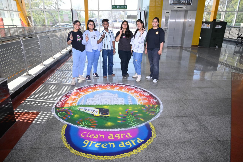 यूपीएमआरसी के प्रबंध निदेशक सुशील कुमार ने शहरवासियों को धन्यवाद देते हुए कहा की अबतक लगभग 17 लाख यात्रियों ने आगरा मेट्रो में विश्वास जताया है और शहर में यात्रा करने के लिए मेट्रो का उपयोग किया है। ये संख्या हर दिन बढ़ रही है और ताज महल, आगरा किला और मन:कामेश्वर मंदिर जैसे स्मारकों से मेट्रो की सीधी कनेक्टिविटी के कारण, पर्यटक और आगंतुक भी बिना किसी परेशानी के मेट्रो सुविधा का लाभ उठा रहे हैं। बता दें कि ताजमहल मेट्रो स्टेशन पर आयोजित कार्यक्रम की शुरूआत रंगोली बनाने के साथ हुई। इस दौरान ललित कला संस्थान के विद्यार्थियों ने ताजमहल मेट्रो स्टेशन पर ‘आगरा मेट्रो’ थीम आधारित मनमोहक रंगोली बनाई। इसके बाद यूपी मेट्रो के वरिष्ठ अधिकारियों द्वारा सांस्कृतिक कार्यक्रम में पधारे अतिथियों का स्वागत किया गया।