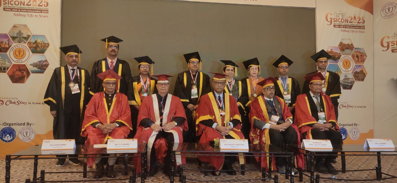 कन्वोकेशन में आज 8 डॉक्टरों को जीरिएटिक सोसायटी ऑफ इंडिया की फैलोशिप प्रदान की गई। जिसमें आगरा के दो डॉक्टरों में डॉ. कैलाश विश्वानी व डॉ. प्रभात अग्रवाल भी शामिल थे। साइंटिफिक सेशन में आज डॉ. पद्मा मलिक खन्ना ने कैमिस्ट्री ऑफ एजिंग, डॉ. विनोद कुमार ने वृद्धावस्था में डिमेंशिया, डॉ. कैलाश रंजन दास ने वृद्धावस्था में वैक्सीनेशन विषय पर व्याख्यान दिया। डॉ. धमीजा ने स्ट्रोक, डॉ. पीसी डेश ने वातावरण का बुढ़ापे पर प्रभाव, डॉ. चंदन कुमार, डॉ. जेके शर्मा, डॉ. कौसर उस्मान ने भी व्याख्यान दिए। डॉ. राजीव किशोर, डॉ. प्रभात अग्रवाल ने मोटापा, डॉ. बीके अग्रवाल ने इंसुलिन पर व्याख्यान दिया।