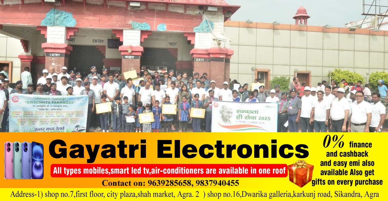 आगरालीक्स…आगरा में रेलवे स्टेशनों पर चला स्वच्छता अभियान. रेलवे अधिकारियों, कर्मचारियों और सफाई मित्रों ने ली स्वच्छता की शपथ