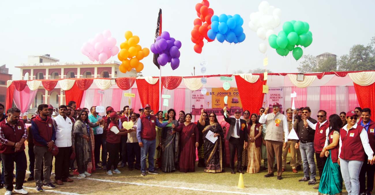 इसके बाद कॉलेज के प्राचार्य प्रो. एसपी सिंह ने स्वागत सम्मान किया। मुख्य अतिथि ने अपने उद्बोधन में कहा कि सेंट जॉन्स कॉलेज की वार्षिक खेलकूद स्पर्धाओं में साक्षी होने का निमंत्रण मेरे लिए बड़े हर्ष की बात है,उन्होंने अपने कॉलेज के दिनों को याद किया कि मैं कई मर्तबा क्लास छोड़ देता था पर क्रिकेट ग्राउंड पर प्रैक्टिस नहीं छोड़ता था साथ ही प्रतिभागियों के उज्जवल भविष्य की कामना करते हुए उन्होंने सेंट जॉन्स कॉलेज के गौरवशाली 175 वर्ष पूरे होने पर 175 रंग–बिरंगे गुब्बारे छोड़कर एथलेटिक्स मीट का विधिवत शुभारंभ किया।