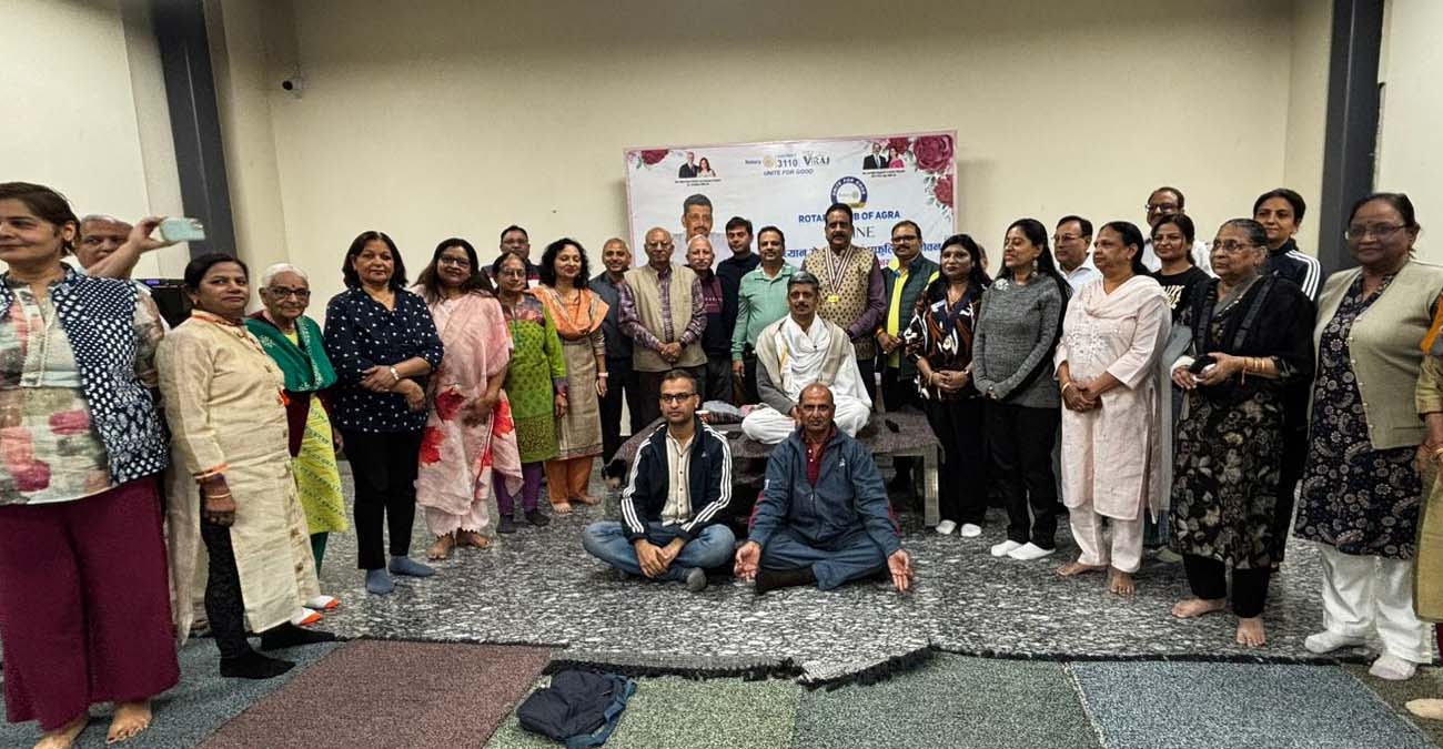 इस दौरान अलवर से आए डॉ. प्रशांत आचार्य, प्राचार्य वैदिक गुरुकुल, योग साधना एवं शोध संस्थान ने और उपस्थित लोगों को ध्यान लगाने की विधि बतायी। उन्होंने आधुनिक जीवन शैली में बदलाव कर और योग को अपनाकर तनावपूर्ण माहौल में सुख और शांति के अनुभव को प्राप्त करने का गुरु मंत्र दिया। इस दौरान रोटरी क्लब आफ़ आगरा डिवाइन के अध्यक्ष डॉ अनुपम गुप्ता, सचिव डॉ. मुकेश चौहान, खेलगांव के योगगुरु दीपक मारू, समीक्षा गुप्ता, आरती मल्होत्रा, विनोद गुप्ता, जातिन अग्रवाल आदि उपस्थित रहे।