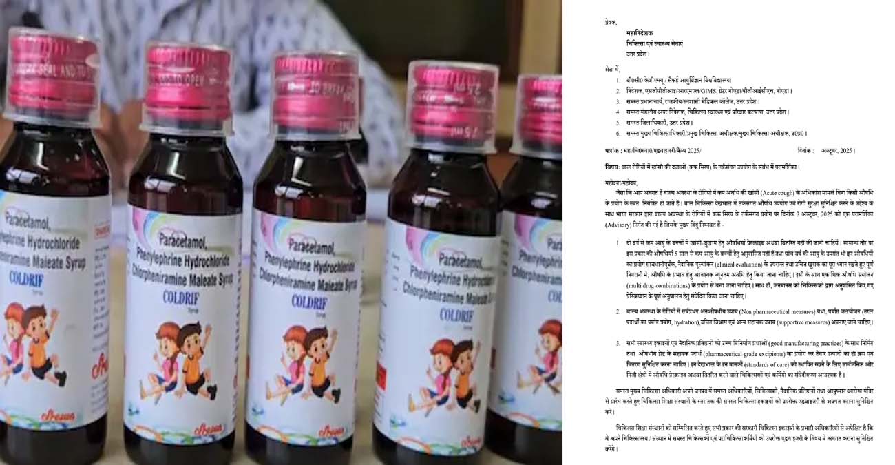 मध्य प्रदेश और राजस्थान में खांसी के सिरप पीने के बाद बच्चों की मौत का मामला सामने आने के बाद केंद्रीय स्वास्थ्य मंत्रालय ने एडवाइजरी जारी की है. इसे देखते हुए महानिदेशक चिकित्सा एंव स्वास्थ्य सेवा उत्तर प्रदेश द्वरा सभी जिलों के लिए दिशा निर्देश दिए गए हैं. इसमें कहा गया है कि दो वर्ष से कम आयु के बच्चों में खांसी-जुखाम के लिए कफ सिरप का इस्तेमाल नहीं किया जाना चाहिए. 5 वर्ष तक की आयु के बच्चों में भी कफ सिरप का इस्तेमाल बच्चों की खांसी को देखते हुए डॉक्टर द्वारा ही किया जाना चाहिए. यही नहीं पांच वर्ष से अधिक आयु के बच्चों के लिए भी निर्धारित मात्रा में ही कफ सिरप दिए जाने चाहिए.इसके लिए सभी जिलों के सीएमओ को आदेश जारी किए गए हैं.