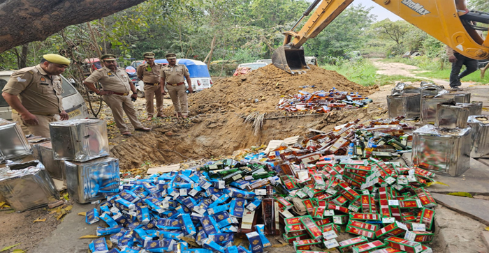 आगरालीक्स…आगरा में पुलिस ने 1130 लीटर अवैध शराब की बोतलों को किया नष्ट. 285 किलो काजू भी गड्ढा खोकर मिट्टी में मिलाए…