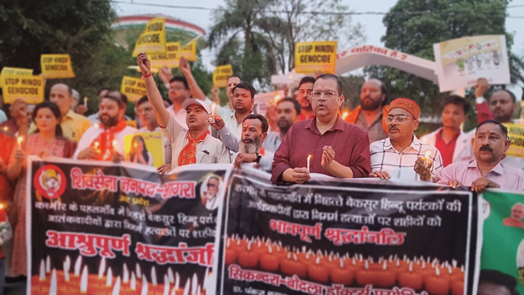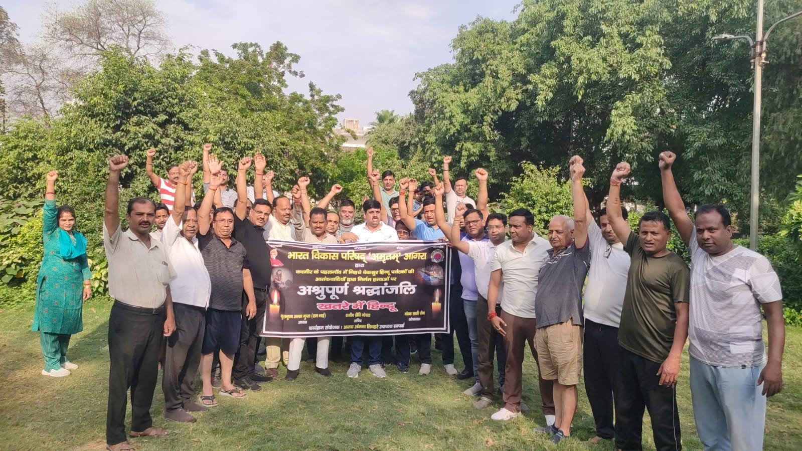 आगरालीक्स…आतंकी घटना को लेकर आगरा में आक्रोश और बढ़ा. सरकार से की एक्शन लेने की मांग. भारत विकास परिषद अमृतम शाखा, सिकंदरा बोदल डॉक्टर्स एसोसिएशन और आई सर्व खुशियों संस्था का झलका क्रोध..कैंडल मार्च निकाला, मृतकों को दी श्रद्धांजलि