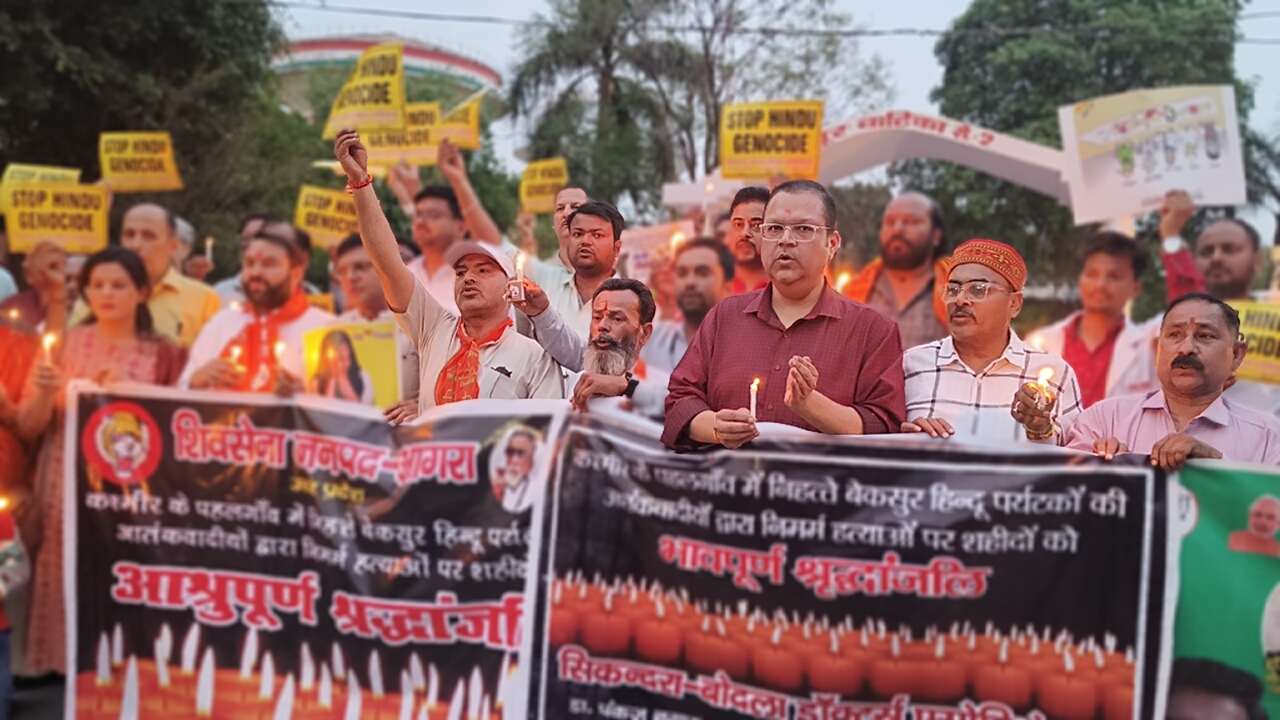 भारत माता के जयकारों संग मोदी जी तुम एक्शन लो, देश तुम्हारे साथ है, के जयकारे जयपुर हाउस स्थित श्रीराम पार्क में गूंज रहे थे। दिल में निहत्थे हिन्दुओं के बहे खून का दर्द और आंखों में आतंक के विरोध में क्रोध झलक रहा था। भारत विकास परिषद अमृतम शाखा द्वारा पहलगाम में हुए आतंकी हमले के विरोध में प्रदर्शन किया। शाखा के अध्यक्ष कुलभूषण गुप्ता (राम भाई)ने कहा कि हिन्दू अभी भी न जागा तो वह दिन दूर नहीं जब बंगला देश की तरह भारत से भी भगा दिए जाएंगे। देश के जयचंद्रो से भी सावधान रहने की जरूरत है। यह मोदी और योगी के नेतृत्व वाला दौर है। इसलिए पाकिस्तान होश में रहे। छेड़ा है तो भारत छोड़ेगा नहीं। संरक्षक उमेश अग्रवाल, विजय अग्रवाल व सचिव राजीव गोयल ने कहा कि देश को सुरक्षित और समृद्ध बनाने के लिए हिन्दुओं में एकजुटता होनी चाहिए। बांटकर काटने वाली राजनीति को समझे और एक दूसरे को सहयोग करें। कार्यक्रम संयोजक अजय शिवहरे कोषाध्यक्ष मयंक जैन ने कहा कि देश भर ही नहीं दुनिया में पाकिस्तान की इस घिनौनी हरकत के प्रति रोष है। प्रदर्शन में मुख्य रूप से क्षेत्रीय अध्यक्ष डॉक्टर तरुण शर्मा जी अंजना शिवहरे, दीपक भार्गव, संजीव गुप्ता, ज्योति मोहन जिन्दल, राजगिरी अग्रवाल, उमेश अग्रवाल, गौरव बिंदल, सुदेश अग्रवाल, महेश गोयल, विमल शिवहरे, अशोक शेतलानी, श्रेष्ठ शिवहरे आदि शामिल थे।