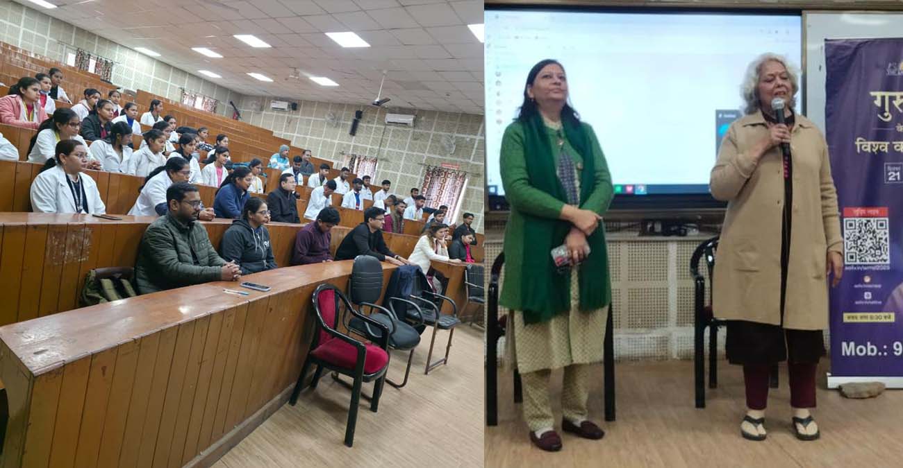 आगामी विश्व ध्यान दिवस के उपलक्ष्य में सरोजिनी नायडू मेडिकल कॉलेज में आज आर्ट ऑफ लिविंग संस्था के वरिष्ठ प्रशिक्षकों -नीता सरीन तथा ममता रल्ली, द्वारा 45 मिनट का विशेष ध्यान सत्र आयोजित किया गया। इस सत्र का उद्देश्य विद्यार्थियों, चिकित्सकों एवं कर्मचारियों को तनाव प्रबंधन, मानसिक शांति तथा भावनात्मक संतुलन के महत्व से अवगत कराना था। ध्यान सत्र के दौरान प्रशिक्षकों ने सरल एवं प्रभावी ध्यान तकनीकों के माध्यम से प्रतिभागियों को मन को शांत रखने, एकाग्रता बढ़ाने तथा दैनिक जीवन में सकारात्मक ऊर्जा बनाए रखने के उपाय बताए। सत्र में मेडिकल छात्र-छात्राओं, फैकल्टी सदस्यों एवं स्वास्थ्यकर्मियों ने उत्साहपूर्वक भाग लिया। इस सत्र में वरिष्ठ संकाय सदस्य डॉक्टर योगिता द्विवेदी, डॉक्टर अंकुर गोयल, डॉक्टर अपूर्व मित्तल, डॉक्टर अर्पिता सक्सेना, डॉक्टर अल्का आदि मौजूद रहे।