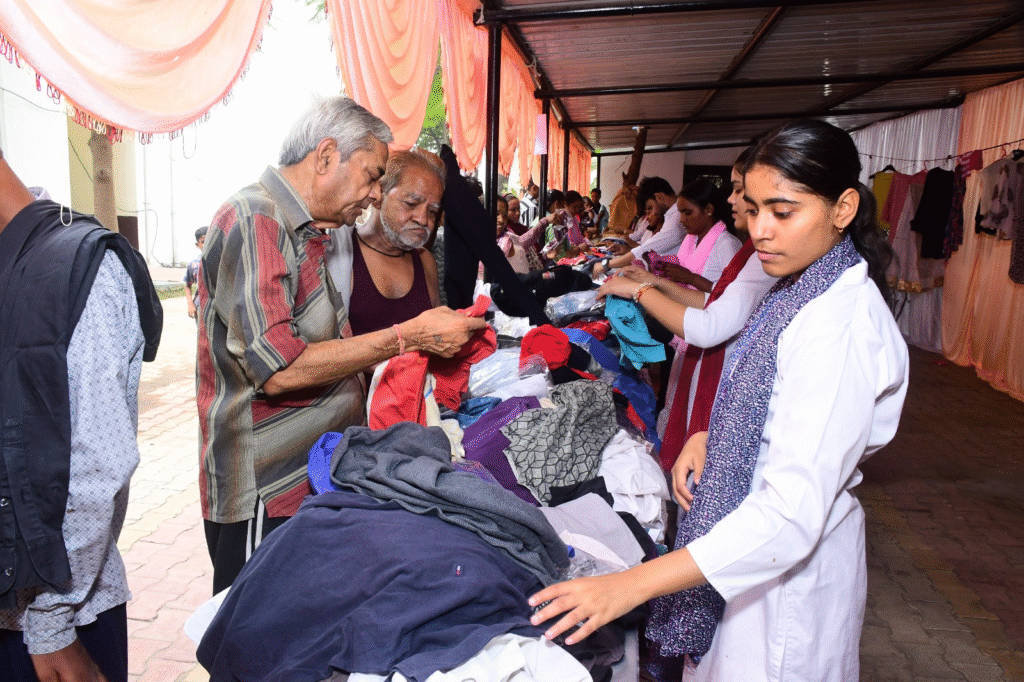 ‘बापू बाज़ार’ का मुख्य उद्देश्य घर के पुराने किन्तु उपयोगी सामान, कपड़े, खिलौने और अन्य वस्तुओं को समाज के वंचित वर्ग तक उनके स्वाभिमान को बनाए रखते हुए बेहद रियायती दरों पर उपलब्ध कराना है। यह पहल 2014 से लगातार की जा रही है और हर वर्ष इसे स्थानीय समाज से विशेष सराहना मिलती है। इस वर्ष भी कपड़े, साड़ी, सूट, जींस, पैंट, शर्ट, बच्चों के वस्त्र, खिलौने, जूते-चप्पल आदि आकर्षक पैकिंग के साथ बेहद किफायती दामों पर उपलब्ध कराए गए।