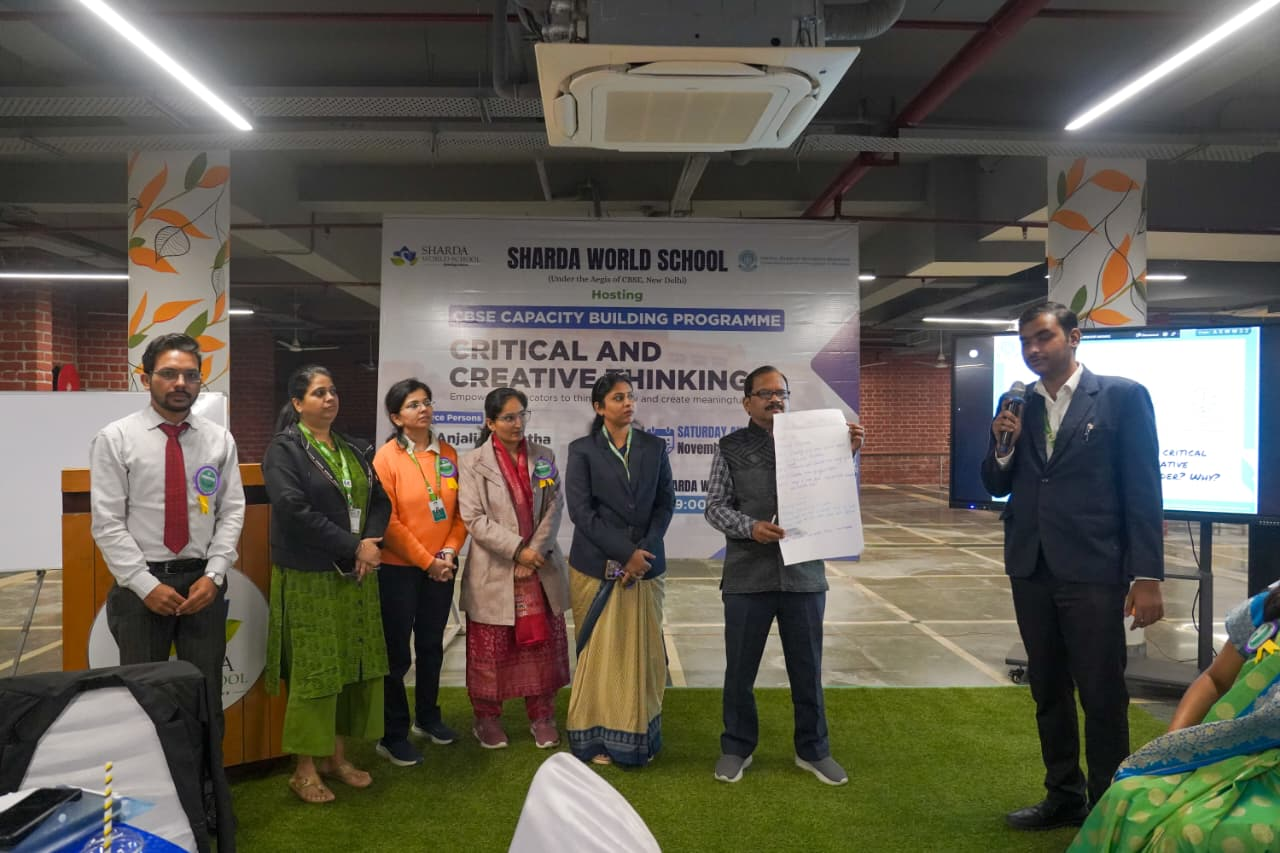 शारदा वर्ल्ड स्कूल, आगरा में केंद्रीय माध्यमिक शिक्षा बोर्ड (CBSE) द्वारा आयोजित क्षमता निर्माण की कार्यशाला का आयोजन (Capacity Building Programme) किया गया। इस कार्यक्रम का मुख्य विषय “आलोचनात्मक एवं सृजनात्मक चिंतन” था, जो आधुनिक शिक्षा प्रणाली की आत्मा कहा जा सकता है। विद्यालय के छात्र छात्राओं ने तिलक लगाकर एवं बैज लगाकर अतिथियों का स्वागत किया । छत्राओं ने मनमोहक स्वागत गीत प्रस्तुत किया।