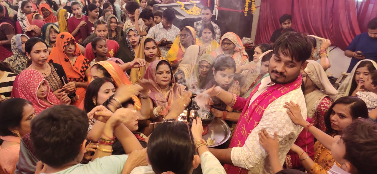 वृंदावन से आए भूदेव कृष्ण शास्त्री व लखनऊ से आए आचार्य लघु मिश्रा द्वारा विधि विधान के साथ प्रतिदिन की तरह चार आरती सम्पन्न करायी। 4 अक्टूबर को दोपहर 12 बजे विसर्जन किया जाएगा। इस अवसर पर मुख्य रूप से मुकेश, आकाश, मनीष, दिनेश कुशवाह, विष्णु, पार्षद विक्रांत कुशवाह, पार्षद अमित पटेल, पिंकी, रिया, सुमन, रूबी आदि उपस्थित थीं।