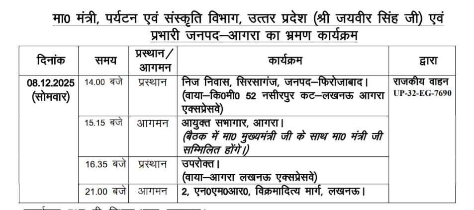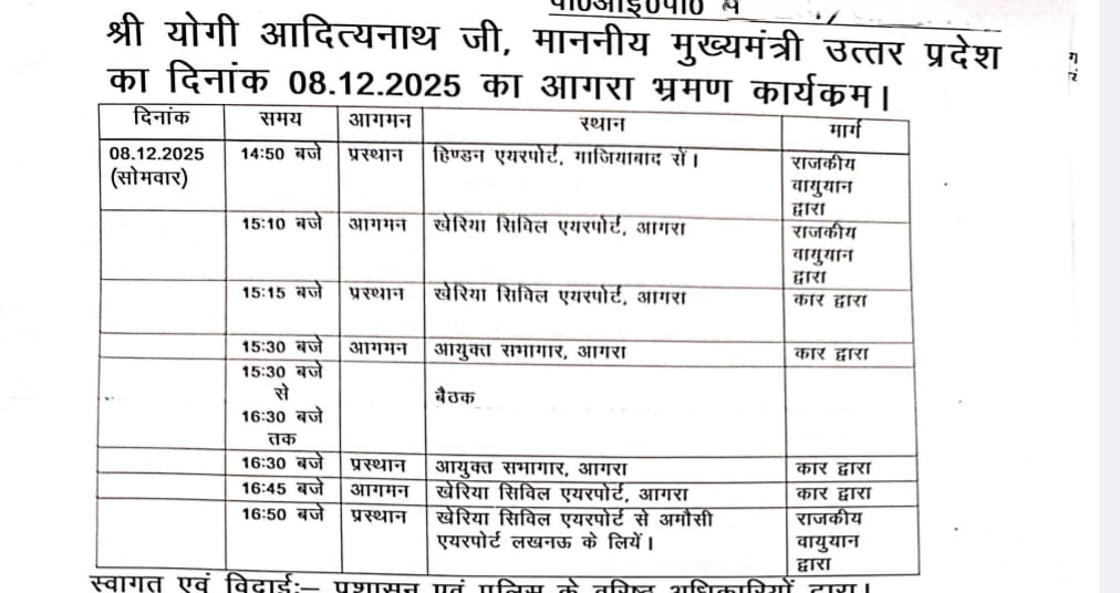 आगरा लीक्स….आगरा में कल सीएम योगी आ रहे है…दो घंटे रहेंगे आगरा में..प्रभारी मंत्री और गन्ना विभाग मंत्री भी होंगे..जानिए पूरा कार्यक्रम
