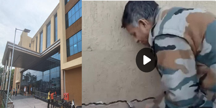 बिल्डिंग में दरार का कांग्रेस जिलाध्यक्ष रामनाथ सिकरवार ने सोशल मीडिया पर वीडियो अपलोड किया है, वीडियो में वे एक लोहे की रॉड को डालते हुए दिखाई दे रहे हैं। इस तरह निर्माण की गुणवत्ता पर सवाल उठाते हुए कह रहे हैं कि यहां कितने बड़े अधिकारी आते हैं लेकिन किसी का ध्यान नहीं गया। वीडियो में यह भी पूछ रहे हैं कि नई बिल्डिंग में दरार क्यों आई है। यह भी कह रहे हैं कि समय रहते ध्यान नहीं दिया तो बिल्डिंग गिर सकती है।
