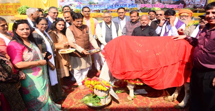उल्लेखनीय है कि भारत विकास परिषद “संकल्प” शाखा द्वारा प्रतिमाह की जाने वाली गौ सेवा के वार्षिक कार्यक्रम के रूप में रविवार, 16 फरवरी को श्रीकृष्ण गौशाला बल्केश्वर में “गौ माता पूजन एवं गौ माता के छप्पन भोग” का कार्यक्रम आयोजित किया था। इस कार्यक्रम के अंतर्गत विधिवत गौ पूजन के पश्चात गाय द्वारा खाए जाने वाले 56 प्रकार के भोज्य पदार्थ, जिनमें विभिन्न प्रकार की हरी सब्जियां व फल, विभिन्न प्रकार की दालें, सूखे मेवे, गुड़, पेठा, खल-भूसा व चुनि के साथ ही परिषद के प्रत्येक सदस्य परिवार से गौ-ग्रास के रूप में आई ताजी रोटियों का भोजन गौशाला की सैकड़ों गायों को कराया गया।