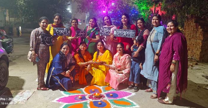 इसमें अपर्णा व्यू अपार्टमेंट, बांके बिहारी धाम, मंगलम एस्टेट, अमर बाग, शीतला धाम, मंगलम शिला, कृष्णा बाग, पुष्पांजलि हाइट्स, गायत्री अपार्टमेंट, ड्रीम वैली, कल्याणी हाइट्य, तुलसी विहार, सरला बाग एक्सटेंशन, मीना एंक्लेव, कृष्णा बाग, पुष्पांजलि बाग, सरला बाग आदि कॉलोनियों और अपार्टमेंट की महिलाएं दीपदान करके प्रकाश और समूह एकता का प्रतिनिधित्व करती हैं। महिलाओं ने स्थान− स्थान पर आकर्षक रंगोली और विद्युत सज्जा भी की थी।
