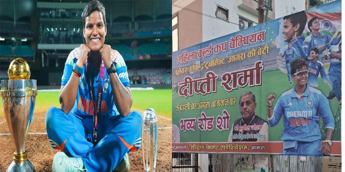 आगरालीक्स…Agra News: . आगरा में कुछ ही घंटे बाद महिला विश्व कप विजेता की सूत्रधार दीप्ति शर्मा 10 किलोमीटर लंबा रोड शो, दिल्ली से आ रहीं आगरा, देखें रूट। ( Agra News: Deepti Sharma 10 KM Long road show start after few hours in Agra)