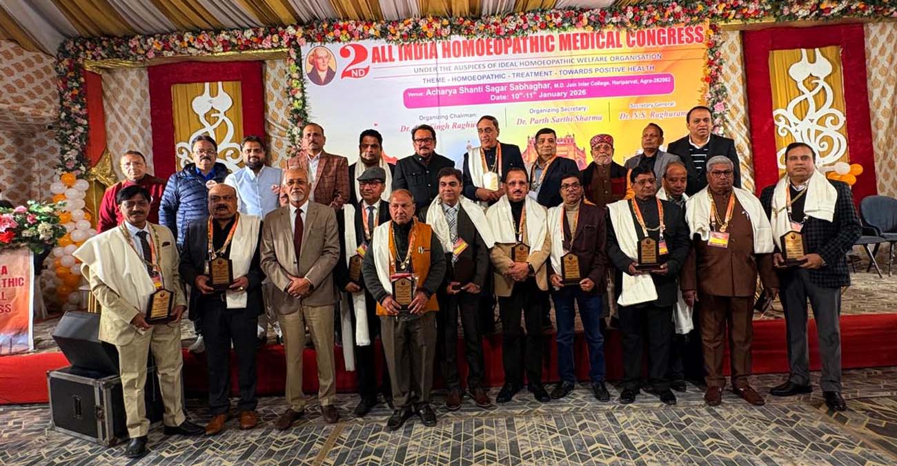 द्वितीय ऑल इंडिया होम्योपैथिक कांग्रेस में बेहतर कार्य करने वाले चिकित्सकों को केंद्रीय राज्य मंत्री प्रोफेसर एसपी सिंह बघेल एवं आयोजन समिति की ओर से स्मृति चंद्र भेंट कर सम्मानित किया गया। डॉ प्रदीप गुप्ता ,डॉ धुर्बा ज्योति,डॉ कैलाश चंद्र सारस्वत,डॉ विजय यादव, डॉ अजीत कुमार शर्मा , डॉ पंकज त्रिपाठी डॉ धीरेंद्र सिंह, डॉ एच पाल,डॉ अनिल कुमार शर्मा,डॉ अनिल शाम,डॉ अशोक चौहान , डॉ अशोक वाष्र्णेय ,डॉ प्रभात कुलश्रेष्ठ ,डॉ दिवाकर वशिष्ठ,डॉ जे एन सिंह रघुवंशी,डॉ पार्थ सारथी शर्मा,डॉ जितेश शर्मा , डॉ आर्यमन शर्मा, पद्म श्री डॉ आर एस पारीक सहित पंद्रह डॉक्टर को सम्मानित किया गया।