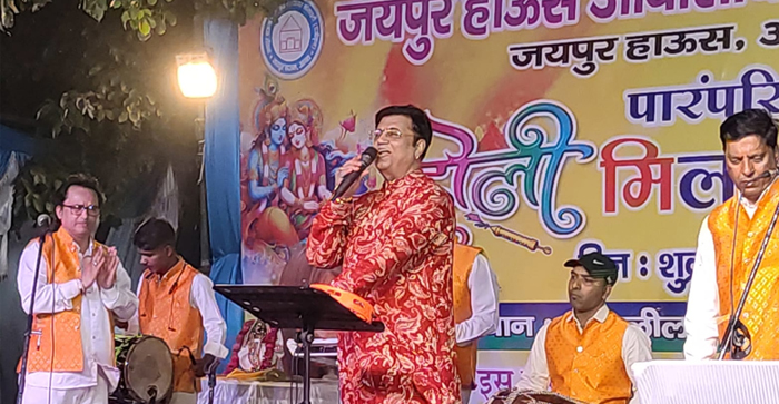 शिव की भक्ति और श्याम सलोने की मस्ती। होली के रंग और भजनों के रूप में भक्ति की बहती गंगा। सुप्रसिद्ध पार्श्व गायक विपिन सचदेवा के भजनों पर श्रद्धालु भक्ति भाव में ऐसे डूबे कि हर तरफ उत्साह और उमंग के रंग बिखरे नजर आए। कुछ ऐसा ही नजारा था जयपुर हाउस आवासीय वेलफैयर सोसायटी द्वारा रामलीला पार्क में आयोजित होली उत्सव, भजन संध्या व सहभोज कार्यक्रम का। कार्यक्रम का शुभारम्भ मुख्य अतिथि कैबिनेट मंत्री योगेन्द्र उपाध्याय ने दीप प्रज्ज्वलित कर किया।