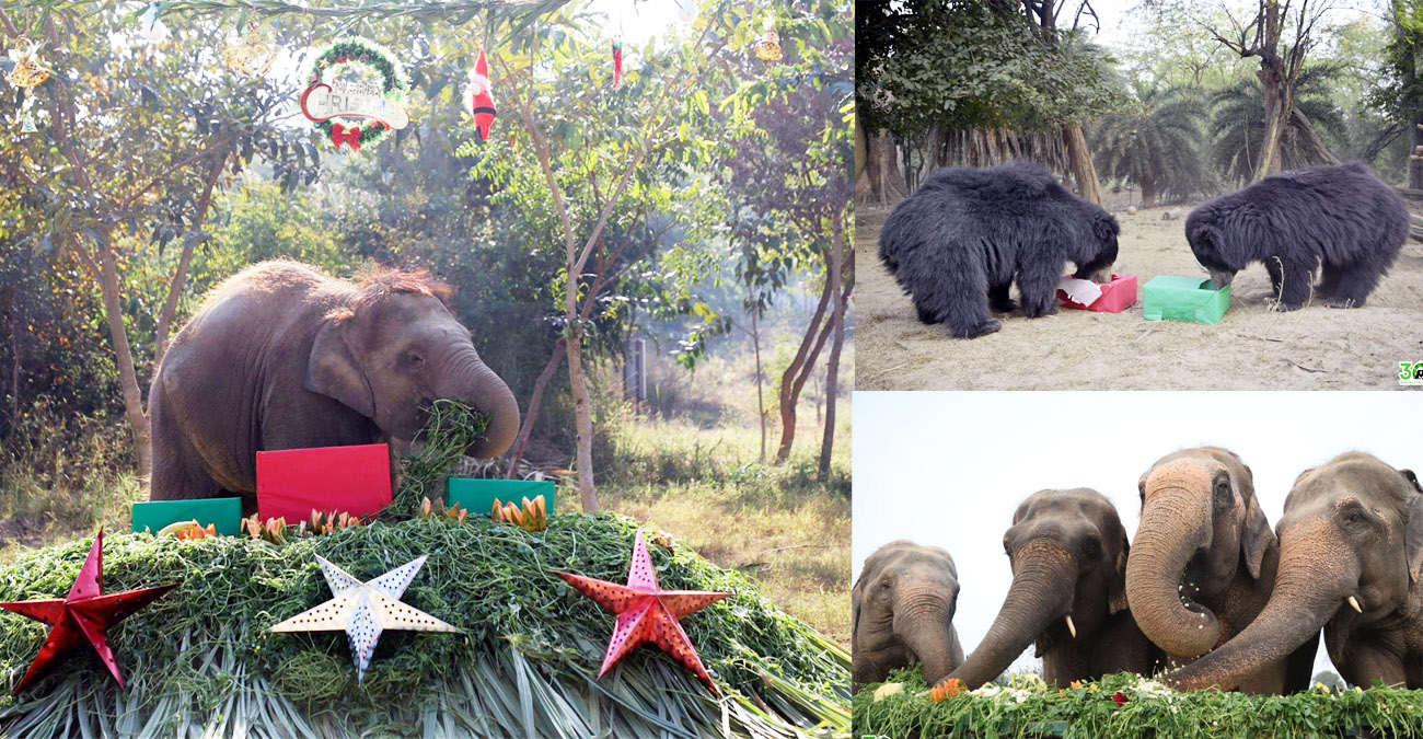 आगरालीक्स…आगरा में हाथियों और भालुओं ने मनाया क्रिसमस. लजीज व्यंजनों का लिया स्वाद…पेड़ों को घंटियों और सितारों से सजाया गया. सांता क्लॉज बनकर आए कर्मचारी