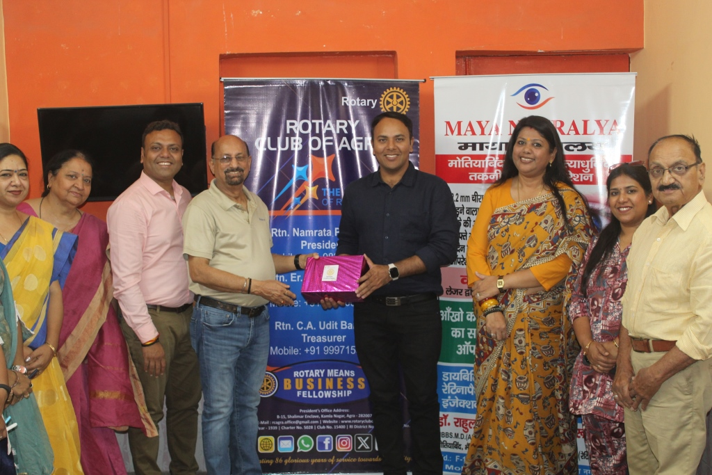रोटरी क्लब ऑफ आगरा ने रोटरी डिस्ट्रिक्ट 3110 की आरोग्यम पहल के तहत आज कमला नगर स्थित सेक्रेड मदर जूनियर स्कूल में एक नि:शुल्क नेत्र जांच शिविर का आयोजन किया। इस शिविर का संचालन प्रसिद्ध नेत्र रोग विशेषज्ञ डॉ. राहुल सिंह के नेतृत्व में किया गया।शिविर के दौरान डॉ. सिंह की टीम द्वारा विद्यालय के लगभग 350 विद्यार्थियों की प्राथमिक स्क्रीनिंग की गई। जिन बच्चों में नेत्र संबंधित समस्याएं पाई गईं, उन्हें डॉ. राहुल सिंह द्वारा मुफ्त परामर्श प्रदान किया गया। उन्होंने बच्चों को मोबाइल फोन के अत्यधिक उपयोग से बचने की सलाह दी और कहा कि आवश्यकता होने पर बड़ी स्क्रीन जैसे एलईडी टीवी का उपयोग करना बेहतर होगा। डॉ. सिंह के अनुसार, छोटी स्क्रीन की तेज रोशनी और निरंतर उपयोग से आंखों पर नकारात्मक प्रभाव पड़ता है और तनाव बढ़ता है।