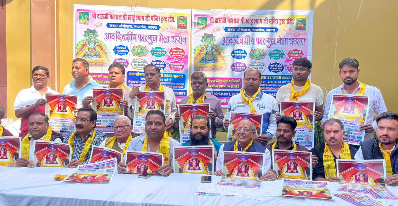 कटरा जोगीदास ताजगंज स्थित खाटू श्याम मंदिर में 24 फरबरी से 3 मार्च तक फाल्गुन महोत्सव का आयोजन किया जा रहा है। शनिवार को ताजगंज स्थित सिद्धार्थ होटल में श्री दाऊजी महाराज खाटू श्याम मंदिर ट्रस्ट के पदाधिकारियो ने फाल्गुन मेला महोत्सव के पोस्टर विमोचन किया। संरक्षक विनोद अग्रवाल व कृष्ण मुरारी अग्रवाल ने बताया कि फाल्गुन महोत्सव पर मंदिर को रंग बिरंगी रोशनी व फूलों से सजाया जाएगा। हर रोज फूल बंगले का आयोजन होगा। रंग भरनी एकादशी पर सुबह बाबा की पालकी निकलेगी।मंदिर ट्रस्ट के अध्यक्ष राजू गोयल ने बताया कि 24 फरबरी को मेहंदी की होली, 25 को फलो की होली, 26 को टॉफी चॉकलेट की होली, 27 को मंदिर की शोभायात्रा, 28 को मेवे की होली, 01 मार्च को चंदन व इत्र की होली, 02 को फूलो की होली और 03 को गुलाल की होली के साथ समापन होगा। महोत्सव के दौरान मंदिर ट्रस्ट द्वारा पर्यावरण संरक्षण का संदेश देते हुए इको-फ्रेंडली गुलाल के प्रयोग की अपील की जाएगी।