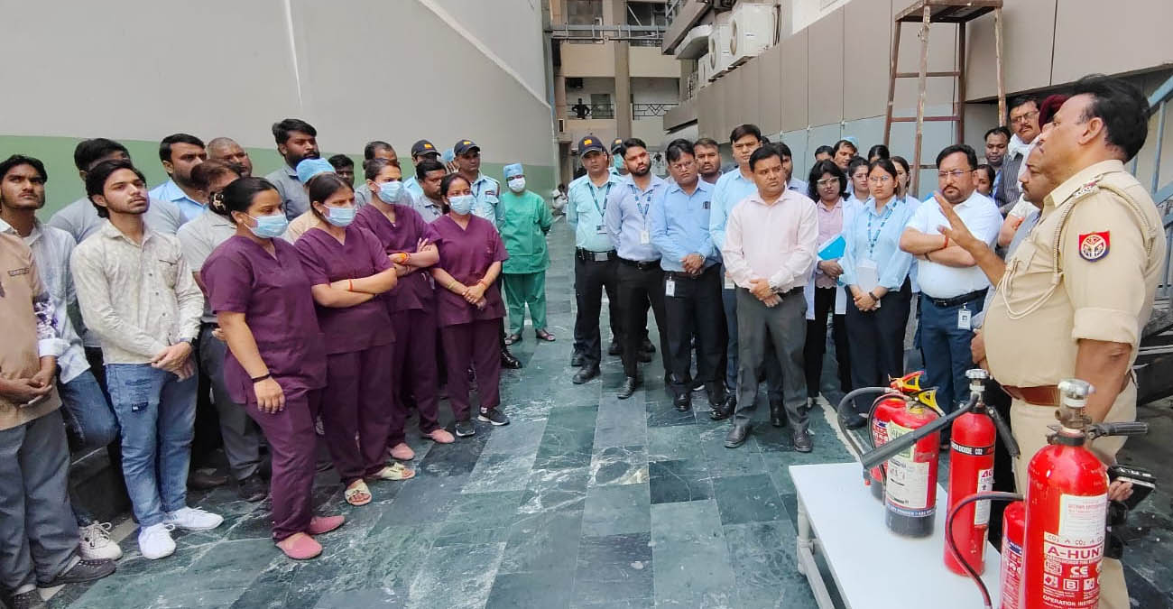 पुष्पांजलि हॉस्पिटल में शुक्रवार को एक मॉकड्रिल का आयोजन डीजी फायर सर्विस के स्कीम के अनुसार आयोजित किया गया. इसमें पुष्पांजलि हॉस्पिटल के मयंक अग्रवाल तथा उनका स्टाफ को प्रशिक्षण दिया गया. अग्निशमन अधिकारी सोमदत्त सोनकर द्वारा आग बुझाने के यंत्रों को चलाने का प्रशिक्षण दिया गया. साथ ही साथ उनके कर्मचारी रामकेश भूपेंद्र द्वारा भी फायर फाइटिंग यंत्र को चलकर दिखाया गया. स्मोक से बचने के लिए आकाश भी समय में किस प्रकार अपनी जान को बचाना है, इससे भी अवगत कराया गया. लगभग सभी विभाग के कर्मचारी पुष्पांजलि हॉस्पिटल के 70 से 80 लोगों ने भाग लिया.
