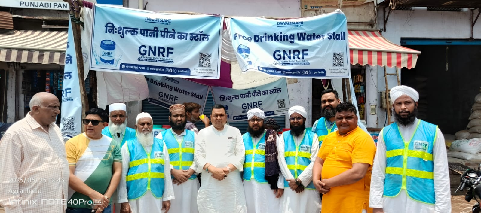 आगरा की भीषण गर्मी में कोई प्यासा न रहे इसके लिए ग़रीब नवाज़ रिलीफ फाउंडेशन के बैनर तले रविवार को ठंडे पानी का स्टॉल लोहा मंडी चौराहे पर लगाया गया. का उद्घाटन पार्षद गजेंद्र पीपल, अशफाक़ सैफी, कमल बाल्मीकि, पार्षद शरद चौहान, इरफान कु़रैशी ने किया. इस पानी के ठंडे स्टॉल से स्थानीय सड़क और बस ओटो से यात्रा करने वाले यात्रियों ने पानी पिया और गर्मी से राहत पायी. स्थानीय लोगों ने GNRF के इस कार्य की सराहना की और प्रोत्साहित किया.