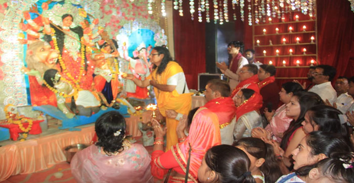 संध्या पूजन में गुलाबी परिधान धारण कर महिलाओं ने माता की धुनि आरती की। इसके बाद महाआरती में मुख्य अतिथि महंत निर्मल गिरी, कमल सिंह वाल्मिकी, संरक्षक रजनी अग्रवाल, पार्षद शरद चौहान, सुनील जैन, पप्पू कुशवाह, मनीष कुशवाह, आकाश कुशवाह, विष्णु, दिनेश, अरुण पाठक, अभिषेक चौधरी आदि उपस्थित रहे। संरक्षक रजनी अग्रवाल ने बताया नवरात्र उत्सव के तीसरे दिन शनिवार को देवी जागरण होगा।