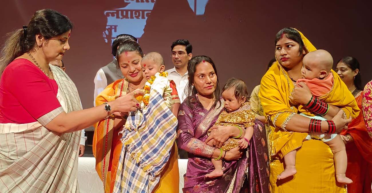 डा बबीता सिंह चौहान ने कार्यक्रम को सम्बाधित करते हुए कहा कि संस्कार जिंदा रहेंगे तो संस्कृति जिंदा रहेगी और संस्कृति से किसी भी राष्ट्र की पहचान जिंदा रहती है, तभी भारत राष्ट्र का अस्तित्व बचेगा, सरकार ने अन्नप्राशन, गर्भवती माताओं की गोद भराई, नवरात्र के पवित्र अवसर पर कन्या पूजन आदि कार्यक्रमों द्वारा,सनातन संस्कारों की पुनः स्थापना की है। हमारे सनातन धर्म में संस्कारों का अत्यधिक महत्व है मां के गर्भ में आने से लेकर जन्म से मृत्यु तक संस्कारों से हमारे देश में संस्कृति का उन्नयन होता है। उन्होंने कहा कि कन्या सुमंगला योजना मुख्यमंत्री योगी के हृदय के अत्यंत करीब हैं उन्होंने बेटियों के लिए पैदा होने से पढ़ाई तक, शादी अनुदान योजना तक योगी जी द्वारा गरीबों की बेटियों के लिए व्यवस्था की है, अब बेटियों की भ्रूण हत्या नहीं होती गरीब मां बाप कन्या सुमंगला योजना के कारण बेटी के जन्म पर उत्साह के साथ उसे अस्पताल से अपने घर ले जाते हैं, योगी सरकार द्वारा सामूहिक विवाह में प्रति जोड़े 01 लाख रुपए प्रदान किए जाते हैं, महिलाओं को आत्मनिर्भर बनाने हेतु स्वयं सहायता समूह बनाए गए हैं, सभी बहनों को योगी जी ने किसी न किसी रूप में लाभान्वित किया है, अब बहन बेटियां रात को देर से कहीं भी आ जा सकती हैं, कानून व्यवस्था उल्लेखनीय है।