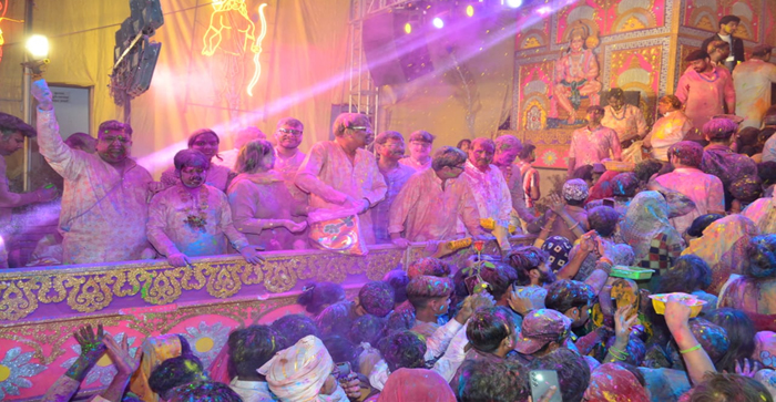 Agra News: Holi being played on Rangbhari Ekadashi at Shri Khatu Shyam Temple in Agra….#agranews