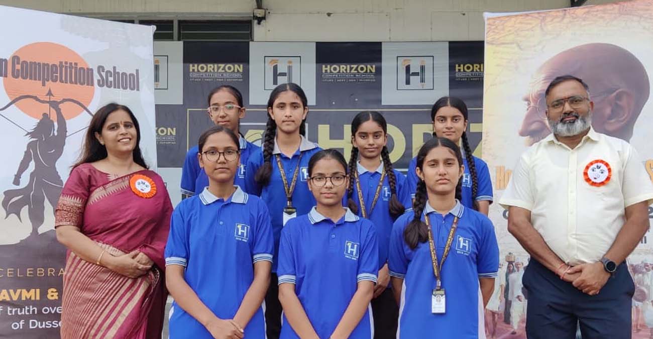 होराइजन कॉम्पिटिशन स्कूल, रोहता, आगरा में राष्ट्रपिता महात्मा गांधी की जयंती बड़े ही उत्साह, श्रद्धा और गरिमामयी वातावरण में मनाई गई। कार्यक्रम का शुभारंभ विद्यालय के निदेशक डॉ. अंकुर काबरा एवं प्राचार्या गायत्री वासवानी द्वारा गांधीजी के चित्र पर पुष्पांजलि अर्पित कर किया गया।