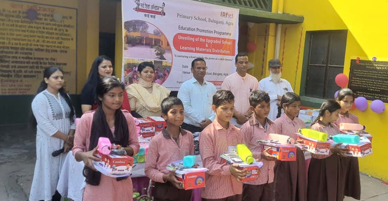 आगरालीक्स…आगरा में आईडीएफ ने पांच सरकाारी विद्यालयों का किया रूपांतरण. बालूगंज विद्यालय में ​बच्चों को शिक्षा सामग्री भी बांटी