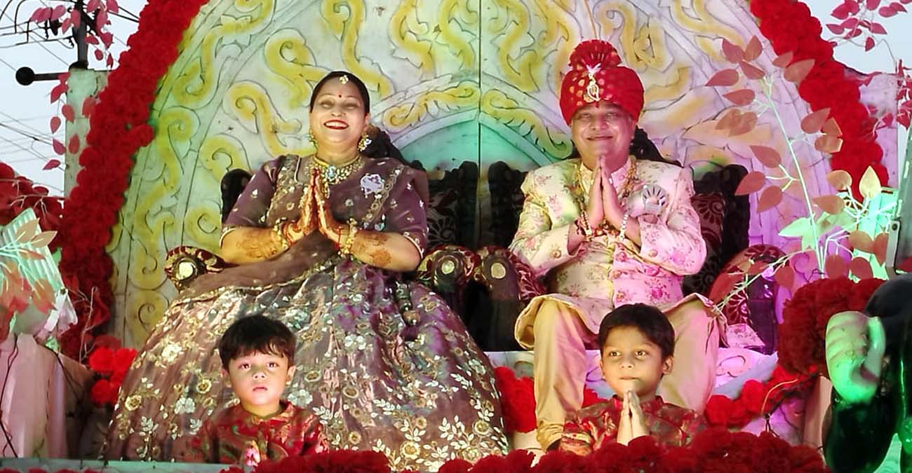 आगरालीक्स…आगरा की जनकपुरी में माता जानकी के विवाह का निमंत्रण देने निकले राजा जनक और माता सुनयना. पुष्प वर्षा के साथ किया स्वागत