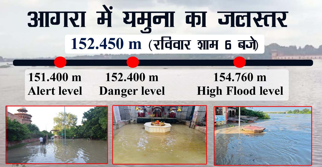 यमुना का जलस्तर लगातार बढ़ रहा है, इससे बाढ़ बड़े क्षेत्र को प्रभावित कर सकती है। आगरा में 1978 में जब बाढ़ आई थी तो बेलनगंज में नाव चलानी पड़ी थी उस समय यमुना का जलस्तर 507 फीट यानी 154.534 मीटर को पार कर गया था। इस बार 500 फीट तक यमुना का जलस्तर पहुंचने के बाद हालात बिगड़ने लगे हैं।