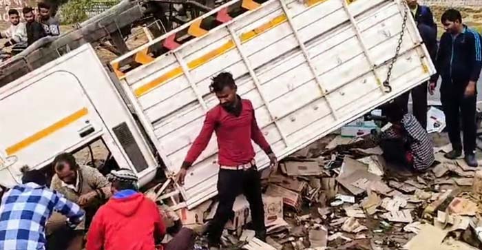आगरालीक्स…आगरा में शराब से भरी मैक्स पलटी, लूटने के लिए पहुंच गई लोगों की भीड़…