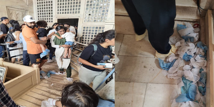 ताजमहल के मुख्य मकबरे पर शूव कवर पहनकर जाते हैं, मुख्य मकबरे के फर्श पर जगह जगह शू कवर लोगों ने फेंक दिए, इन शू कवर को हटाया भी नहीं लगया। वहीं, जगह जगह गंदगी से भी पर्यटक परेशान रहे। शिल्पग्राम और पश्चिमी गेट पार्किंग से ताजमहल तक गोल्फ कार्ट से आते जाते हैं, पर्यटकों की संख्या अधिक होने से गोल्फ कार्ट भी नहीं मिली।