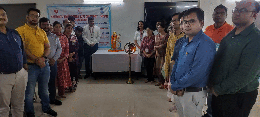 उत्तर प्रदेश के सभी राजकीय मेडिकल कॉलेजों में स्वास्थ्य और परिवार कल्याण मंत्रालय (MOHFW) के महत्वपूर्ण प्रोजेक्ट, NELS (National Emergency Life Support) के अंतर्गत, पहले आधिकारिक ट्रेनर ऑफ ट्रेनर्स (TOT) कार्यक्रम का आज से शुभारंभ हो गया है। आगरा के एसएन मेडिकल कॉलेज में यह पांच दिवसीय प्रशिक्षण कार्यक्रम 1 सितंबर से 5 सितंबर तक कौशल केंद्र (SKILL centre) में आयोजित किया जा रहा है। इस कार्यक्रम का मुख्य उद्देश्य NELS के दिशानिर्देशों को प्रभावी ढंग से लागू करने के लिए विशेषज्ञों को तैयार करना है।इस प्रशिक्षण में, मेरठ, झांसी, सैफई, नोएडा के GIIMS और जालौन जैसे प्रमुख मेडिकल कॉलेजों के प्रोफेसर, एसोसिएट प्रोफेसर और असिस्टेंट प्रोफेसर भाग ले रहे हैं।