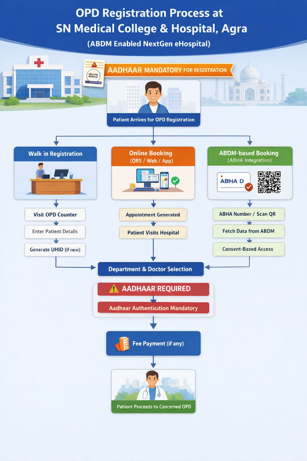 आगरालीक्स…आगरा के एसएन हॉस्पिटल में NextGen E-Hospital प्रणाली लागू. घर बैठे ओपीडी रजिस्ट्रेशन. जांच, उपचार और अन्य सेवाएं भी होंगी डिजिटल. इलाज के लिए आधार कार्ड जरूरी.