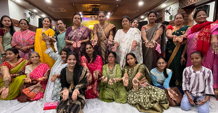 समिति के अमित गोयल ने बताया कि मंदिर पर कीर्तन के साथ श्याम सखियों ने अपने हाथो को मेहंदी से रचाया। मैं दुल्हन बनूँगी श्याम सुंदर कीज.., आओ मेरी सखियों मुझे मेहंदी लगा दो.., राधिका गौरी से मैया कारा दे मेरा ब्याह… जैसे भजनों पर महिलाओं ने नृत्य किया । महिलाओं का शाम 7 बजे से शुरू हुआ मेहंदी लगाने का सिलसिला देर शाम तक चलता रहा। इस अवसर पर मनीष अग्रवाल, सुनीता मित्तल, अरुणा मित्तल, सारिका गोयल, डिम्पल गोयल, सीमा अग्रवाल, कविता सिंघल, मिलन गहलोत, विनीता अग्रवाल, निहारिका, छाया, अलका, रितु, संध्या, पूजा, अंजू, बबली आदि मौजूद रही।