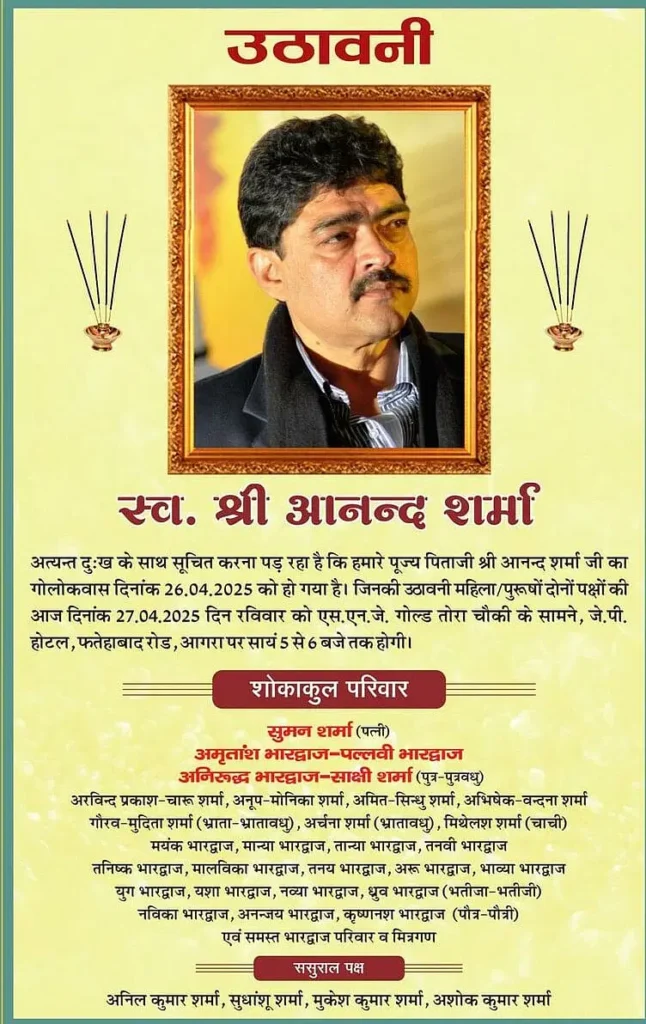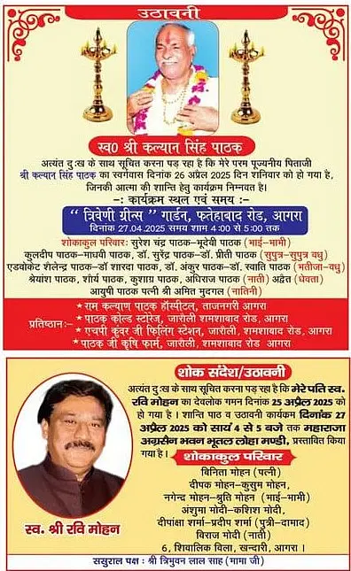 Home आगरा Agra News: Obituaries Agra on 27th April 2025