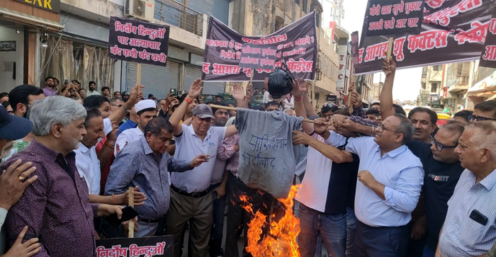आगरा शू फैक्टर्स फैडरेशन ने आतंकी हमले के विरोध में पाकिस्तान और आतंकवाद का पुतला फूंकाकश्मीर के पहलगाम में 22 अप्रैल को हुए आतंकी हमले के विरोध में द आगरा शू फैक्टर्स फैडरेशन द्वारा आज हींग की मंडी तिराहे पर जोरदार प्रदर्शन किया गया। इस दौरान पाकिस्तान व आतंकवाद के खिलाफ जोरदार नारेबाजी की गई और पाकिस्तान का पुतला फूंका गया। प्रदर्शन के दौरान भारत माता की जय और वंदे मातरम् के गगनभेदी नारों से वातावरण गूंज उठा। फैडरेशन के अध्यक्ष विजय सामा ने कहा, “अब समय आ गया है कि पाकिस्तान को उसकी औकात दिखाई जाए। जो देश आतंकवाद को पोषित करता है, मानवता और सिद्धांतों से कोसों दूर है, उसका पूरी मजबूती से मुकाबला होना चाहिए। हम प्रधानमंत्री नरेंद्र मोदी एवं गृह मंत्री अमित शाह से अपील करते हैं कि पाकिस्तान की इस कायरता का सख्त जवाब दिया जाए और एक बार आर-पार की निर्णायक लड़ाई लड़ी जाए।” उन्होंने आगे कहा कि, “देश की सुरक्षा सर्वोपरि है। हर व्यापारी सरकार के साथ खड़ा है और जरूरत पड़ी तो सेना में शामिल होने को भी तैयार है। व्यापार बाद में होता रहेगा, पहले देश है।”