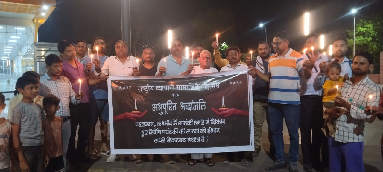 आतंकी हमले को लेकर राष्ट्रीय व्यापारी सामाजिक महासंघ ने निकाला कैंड़ल मार्च
