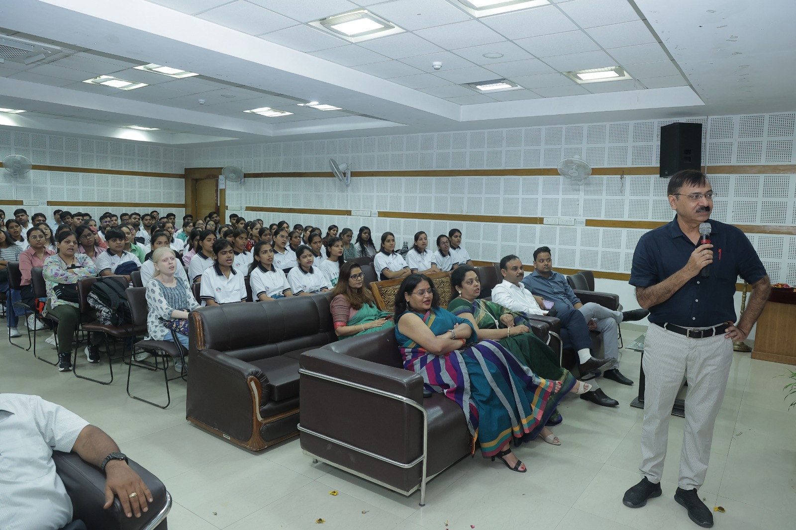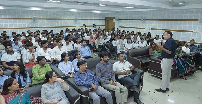 उन्होंने लगातार बदलते व्यावसायिक और तकनीकी वातावरण में अनुकूलनशीलता के महत्व पर जोर दिया, छात्रों को जिज्ञासु बने रहने और नए विचारों के लिए खुले रहने के लिए प्रोत्साहित किया। डॉ. नवीन गुप्ता ने एचआईएमसीएस मंत्रा पर विस्तार से चर्चा की और इसकी प्रासंगिकता पर बात की। उन्होंने छात्रों से चुनौतियों को विकास के अवसर के रूप में अपनाने और व्यक्तिगत और व्यावसायिक विकास के बीच संतुलन बनाए रखने का आग्रह किया। उन्होंने एचआईएमसीएस की विभिन्न परियोजनाओं के बारे में बात की जो एचआईएमसीएस के छात्र समाज के लिए कर रहे हैं। उन्होंने क्रियात्मक अनुसंधान और समाज के प्रति योगदान पर जोर दिया।